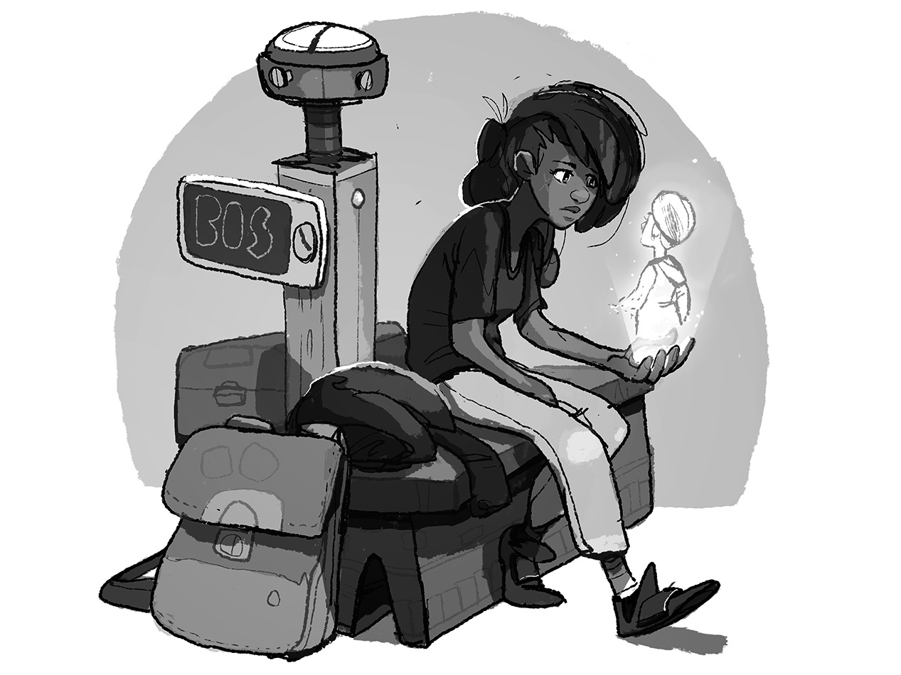 The large gray-and-white terminal was deserted, but the young girl wasn’t alone. She stared into the holographic projection of her little brother, Danny.
