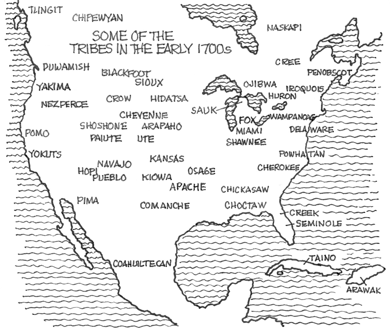 To the Indian nations that had been living in North America for thousands of years, the West wasn’t “wild.” It was part of their home. From the Seminole in the Southeast to the Duwamish in the Northwest, there were many nations. Each had its own culture with distinct beliefs, languages, and lifestyles. The different tribes all believed in respecting the land they lived on. They didn’t think that a single person could own a piece of land privately. A Wampanoag leader told some of the first settlers, “The land is our mother, nourishing all her children... The woods, the streams, everything on it belongs to everybody and is for the use of all. How can one man say it belongs to him only?”