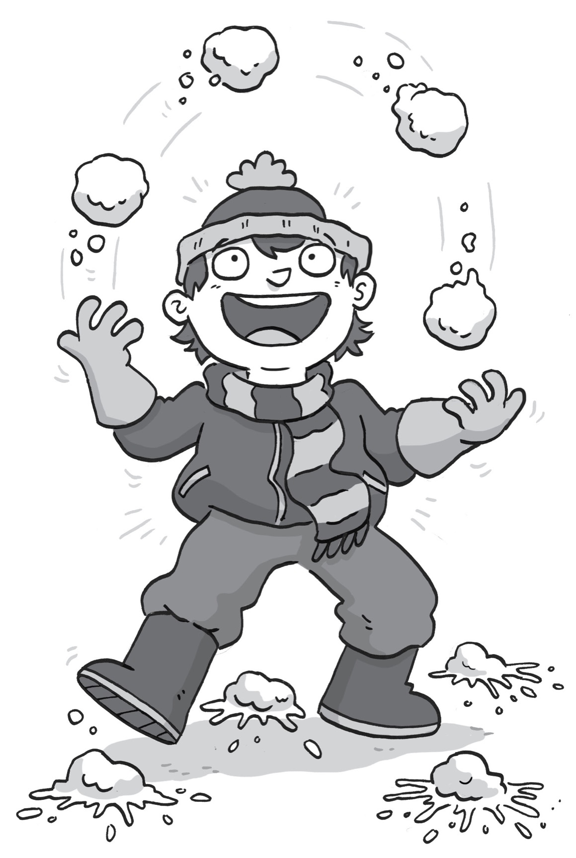 So George made another snowball. And another. And another. Then he started juggling the snowballs. Throwing and catching. Throwing and catching.