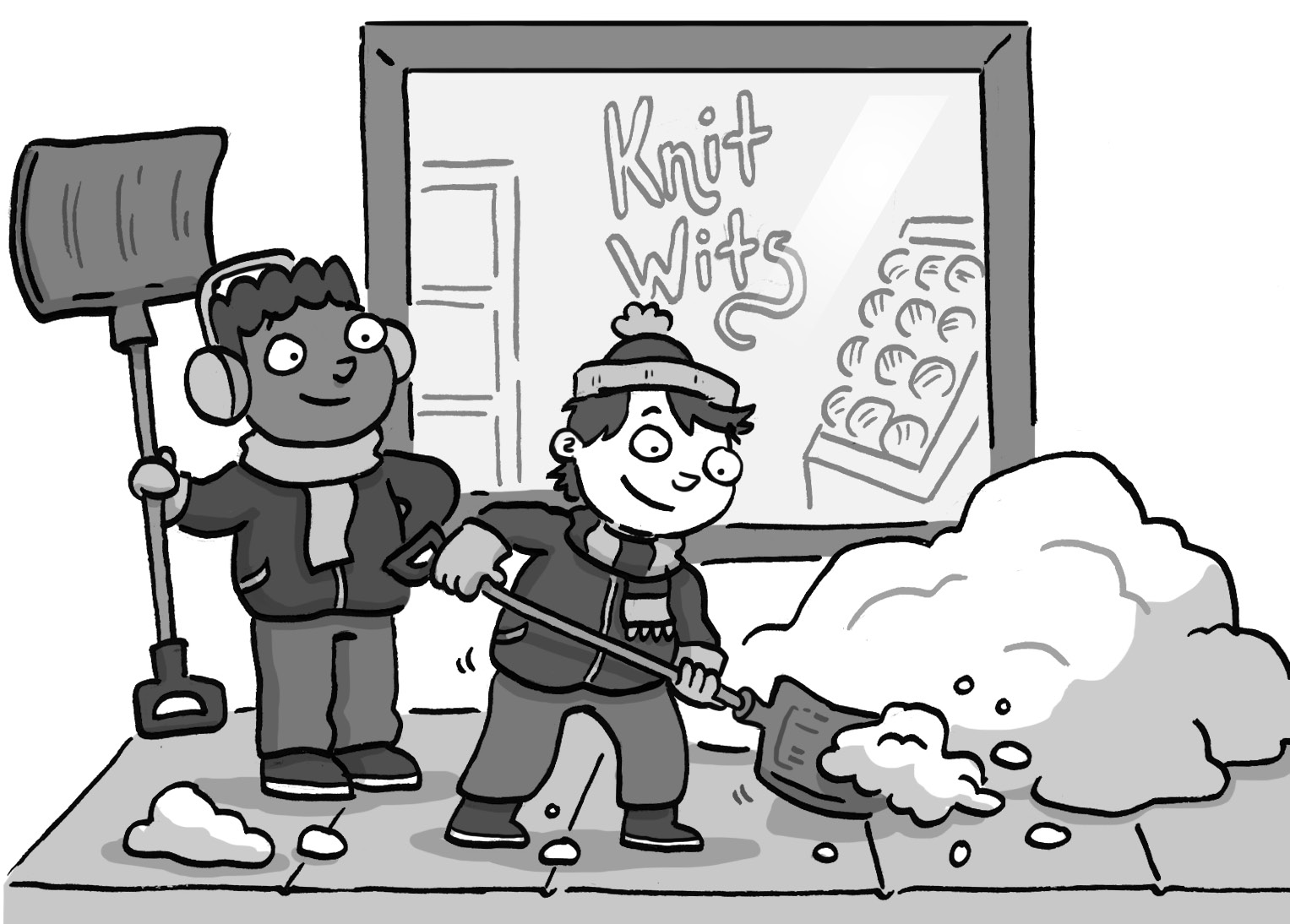 “You can’t shovel in those,” Alex told him. “Put on your snow pants . We’ve got to get to work before some other kids start a shoveling business.”