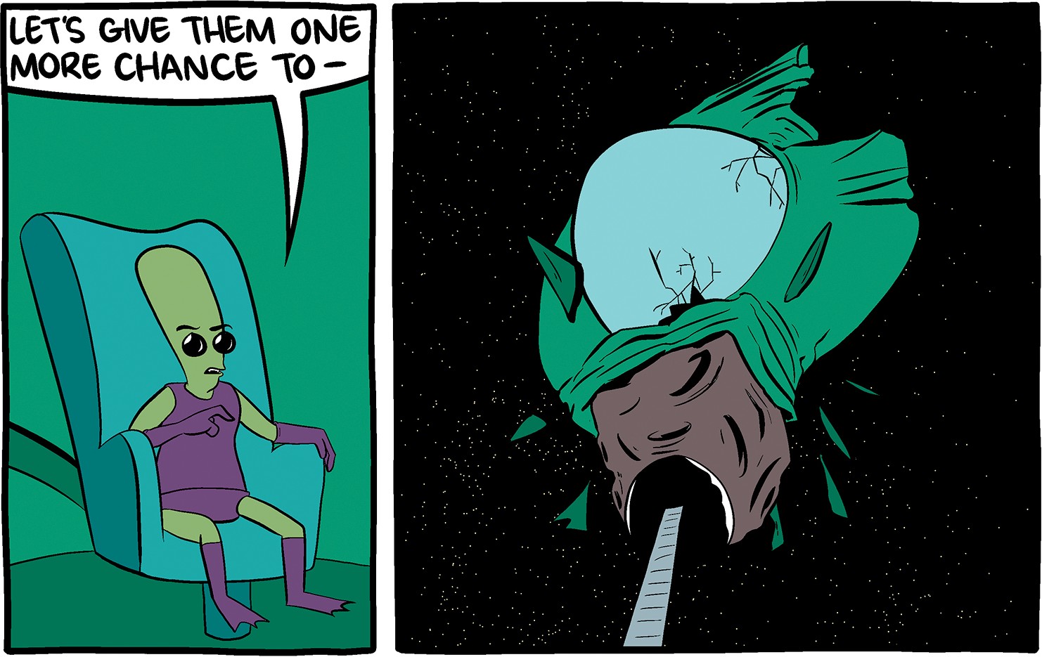 It could also help with global climate change. Scientists have estimated that just a few percentage points more cloud cover might entirely offset all the warming expected to occur over the next century. One way to artificially do this would be to launch a large screen to block some of the incident light. One day you may look up to a friendly dark patch floating in the sky, protecting you from catastrophe. Ideally, it would say something like “ FOR THE LOVE OF GOD, HUMANS! HOW COULD YOU LET THIS HAPPEN?! ” on the Earth-facing side.