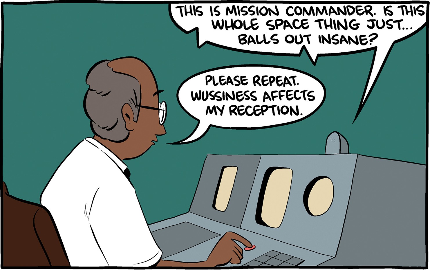 Yes, puking. As we discussed earlier, astronauts experience “weightlessness” because they’re in free fall. Another time you experience free fall is when you start zooming downward in a roller coaster. Your caveman ancestors didn’t have a lot of experience with satellites and roller coasters, so you aren’t evolved to deal with it very well. Your stomach isn’t used to food floating around in every direction, and your sense of balance isn’t used to a world where you somersault every time you lean back. This is why the International Space Station keeps a ready supply of barf bags, even for trained space professionals.