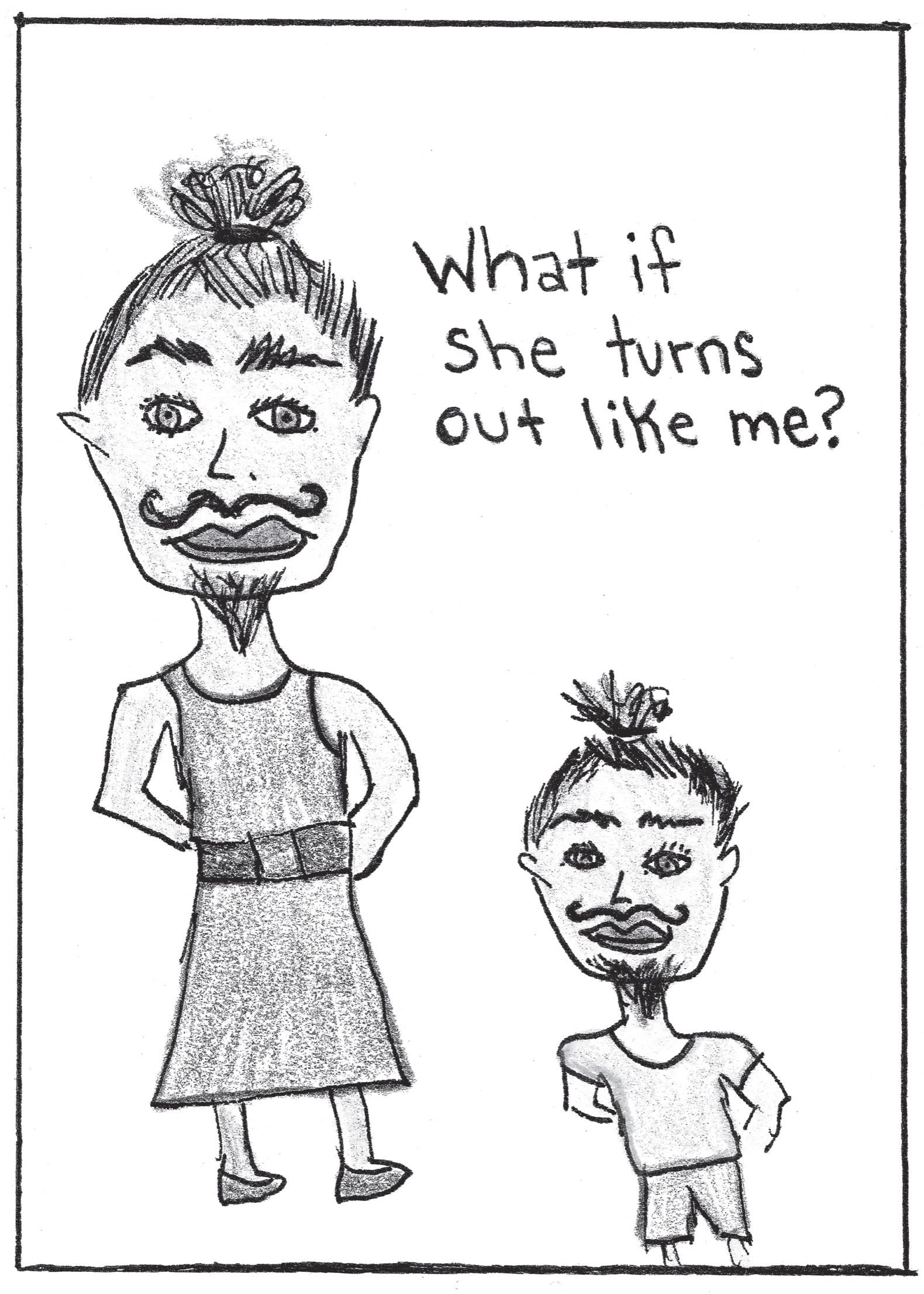 I guess I’m telling you this also because I’m trying to figure out why I care. I know you love me no matter what. I realize no one—even you—will ever see the silky brunette strands that occasionally emerge from my nipple. I acknowledge that I’m not the victim of some cruel hormonal joke; I know that plenty of women have it worse than I do.