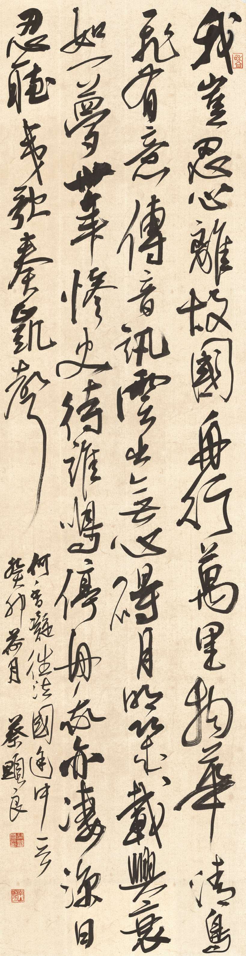 题款:何香凝《往法国途中》一首,癸卯荷月,蔡显良。
