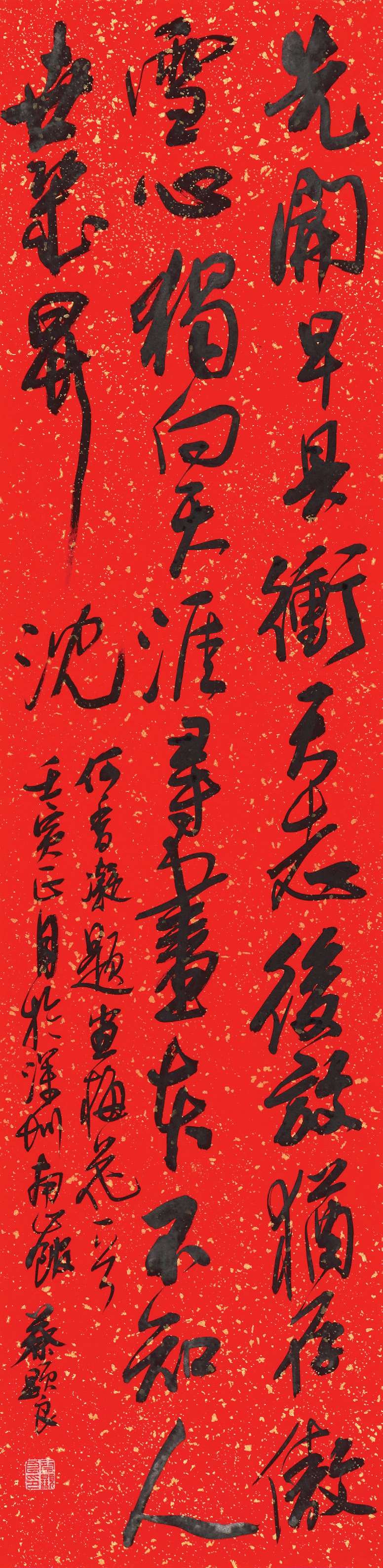 题款:何香凝《题画 梅花》一首,壬寅正月于深圳南山馆,蔡显良。
