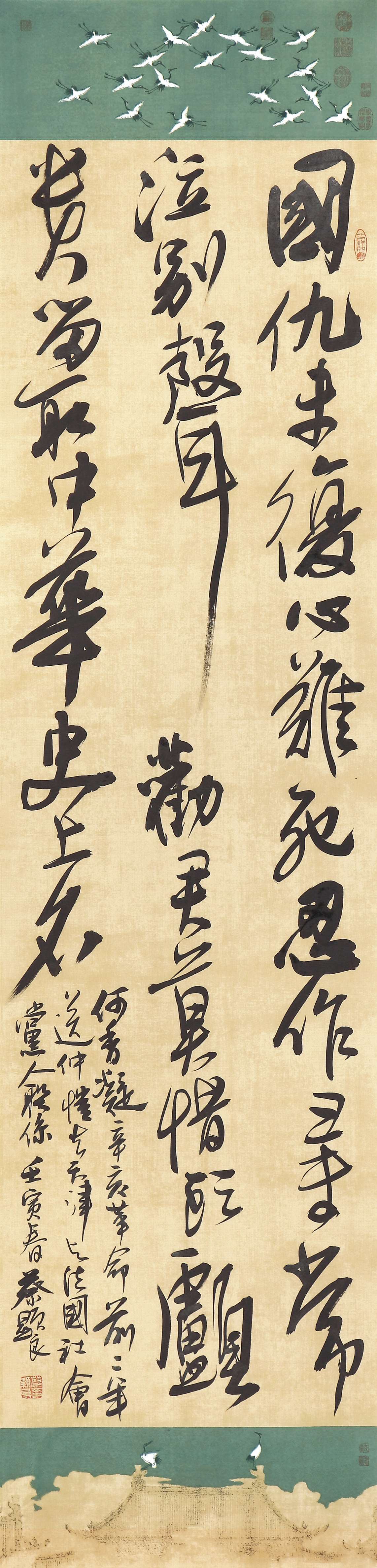 题款:何香凝《辛亥(革命)前二年送仲恺去天津与法国社会党人联系》,壬寅春,蔡显良。