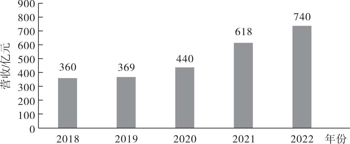 图1-4 2018—2022年中国海洋工程装备制造业营收情况