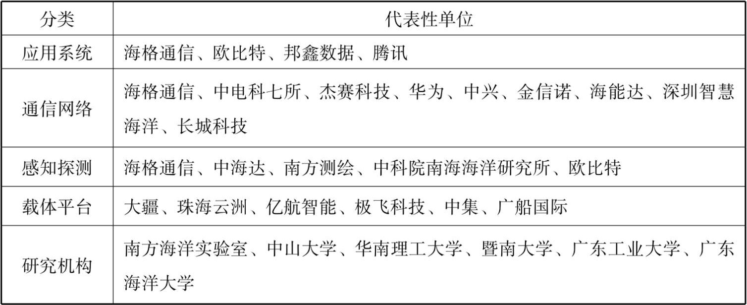 表1-2 粤港澳大湾区海洋电子信息业代表性单位