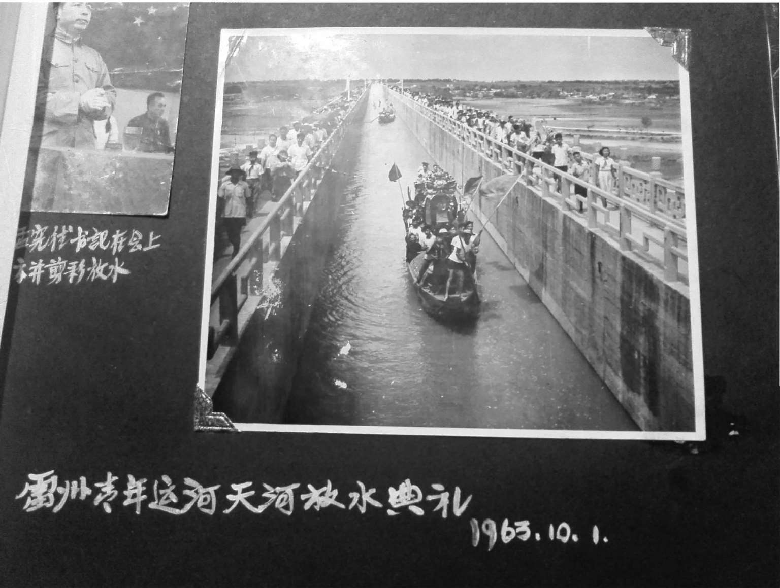 1963年10月1日,雷州青年运河东海河大渡槽放水(湛江市档案馆藏资料)