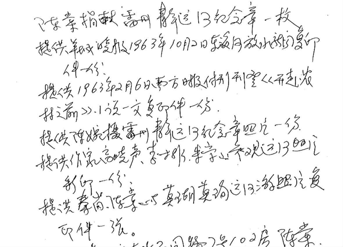 雷州青年运河管理局出具陈棠捐赠纪念章等物品的收条截图