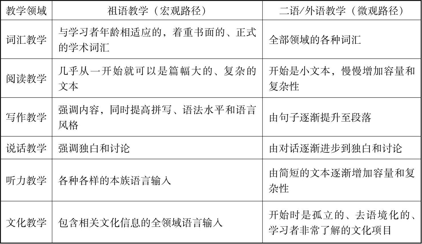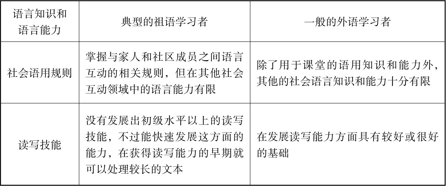 表2-5 典型的祖语学习者和一般的外语学习者的语言知识和语言能力比较