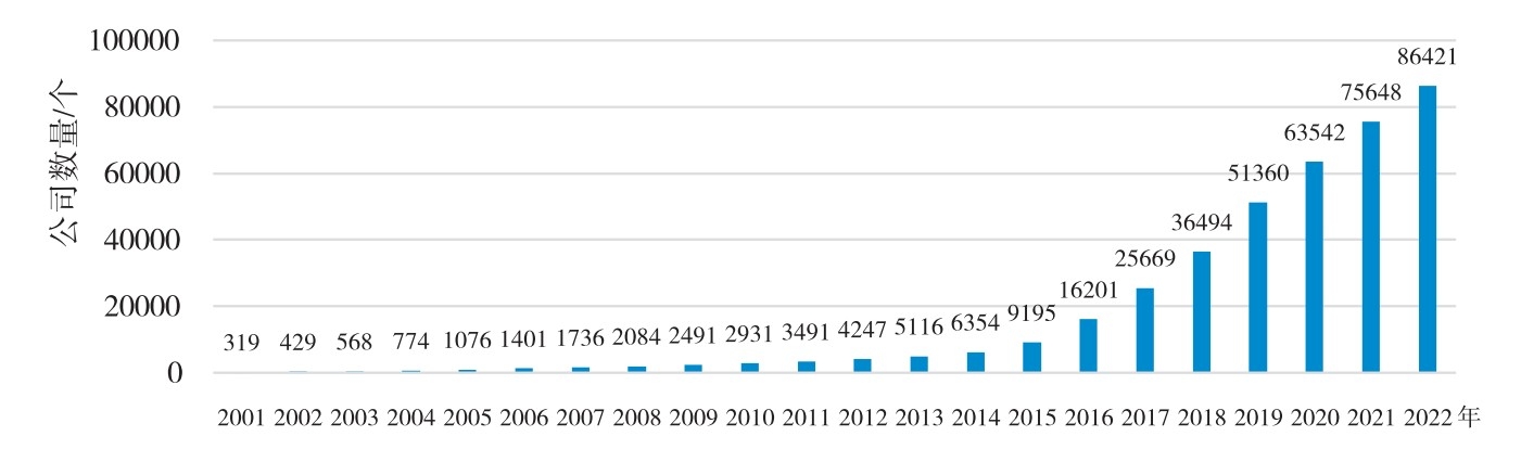图 3-1 中国大陆地区金融科技公司数量的变化
