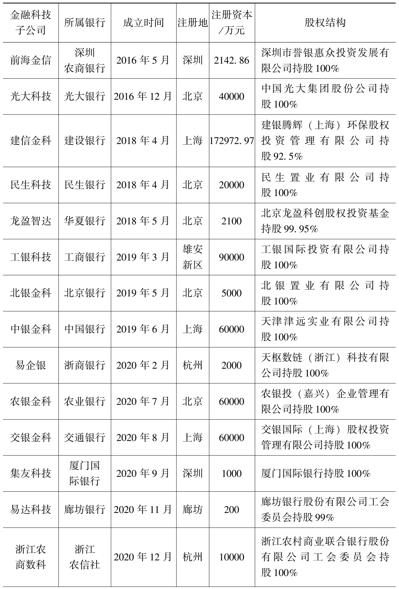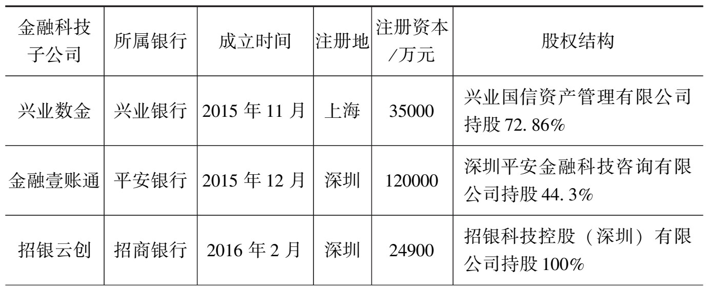 表3-1 银行金融科技子公司基本情况