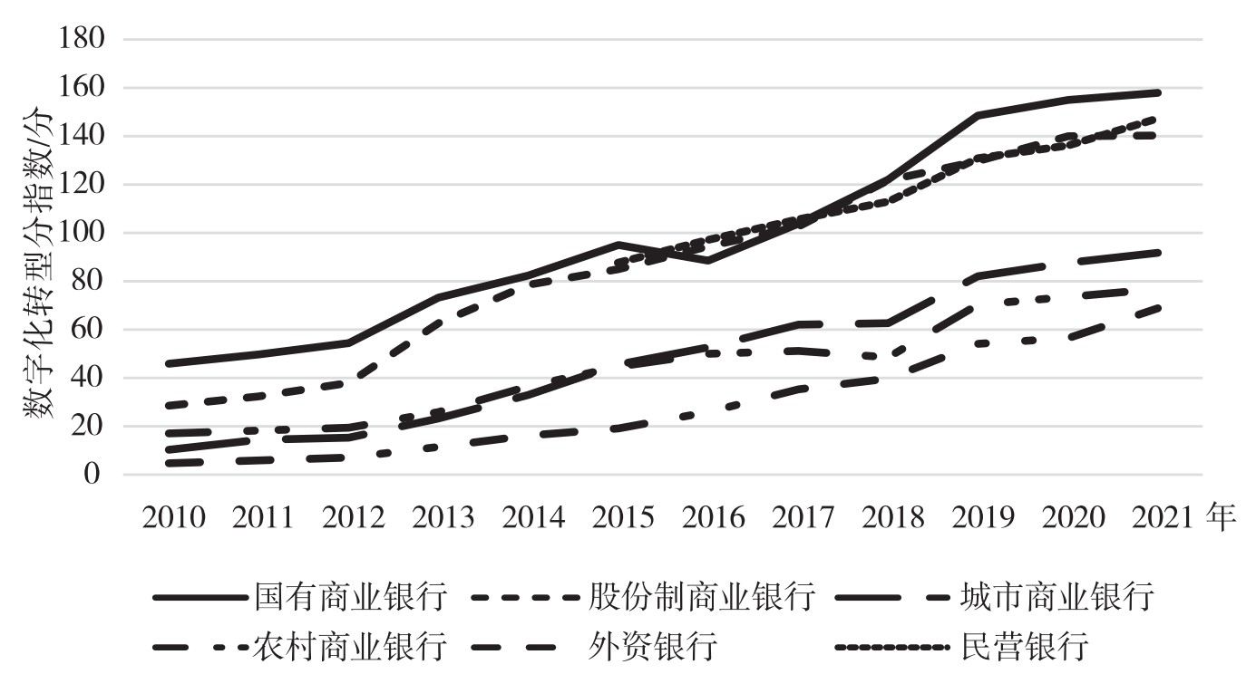 图 3-5 2010-2021年不同类型商业银行数字化转型的进程