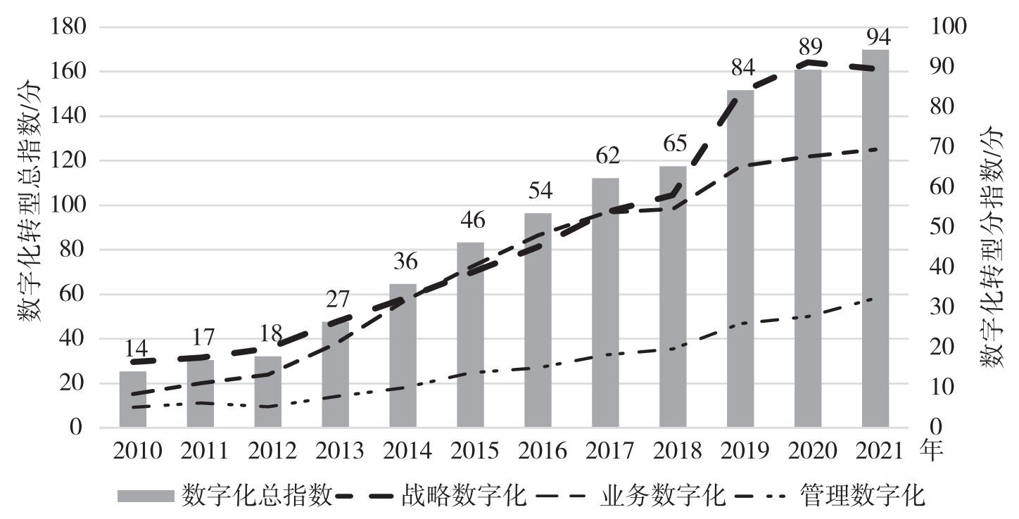 图 3-4 2010-2021年商业银行数字化转型变化趋势