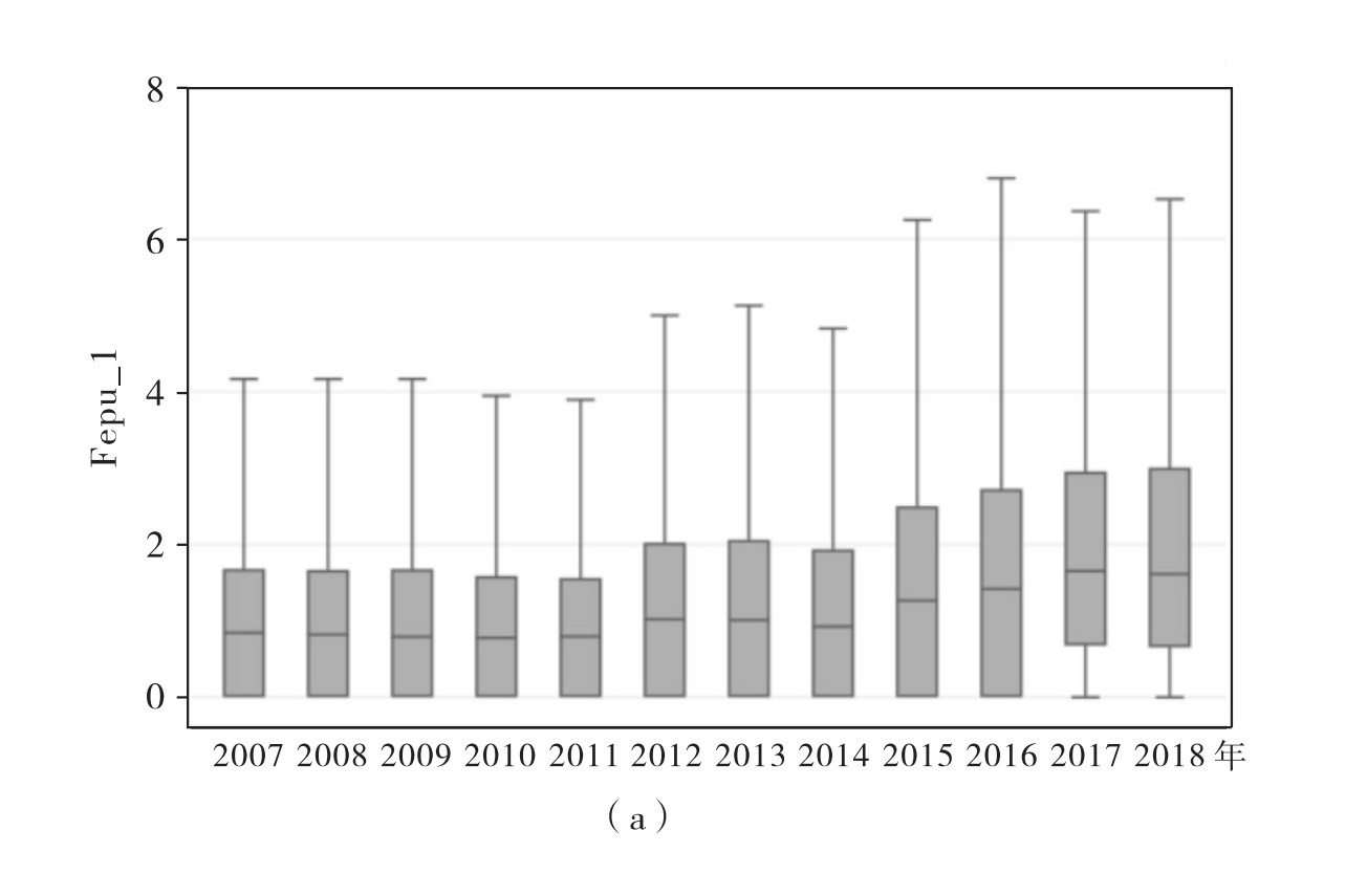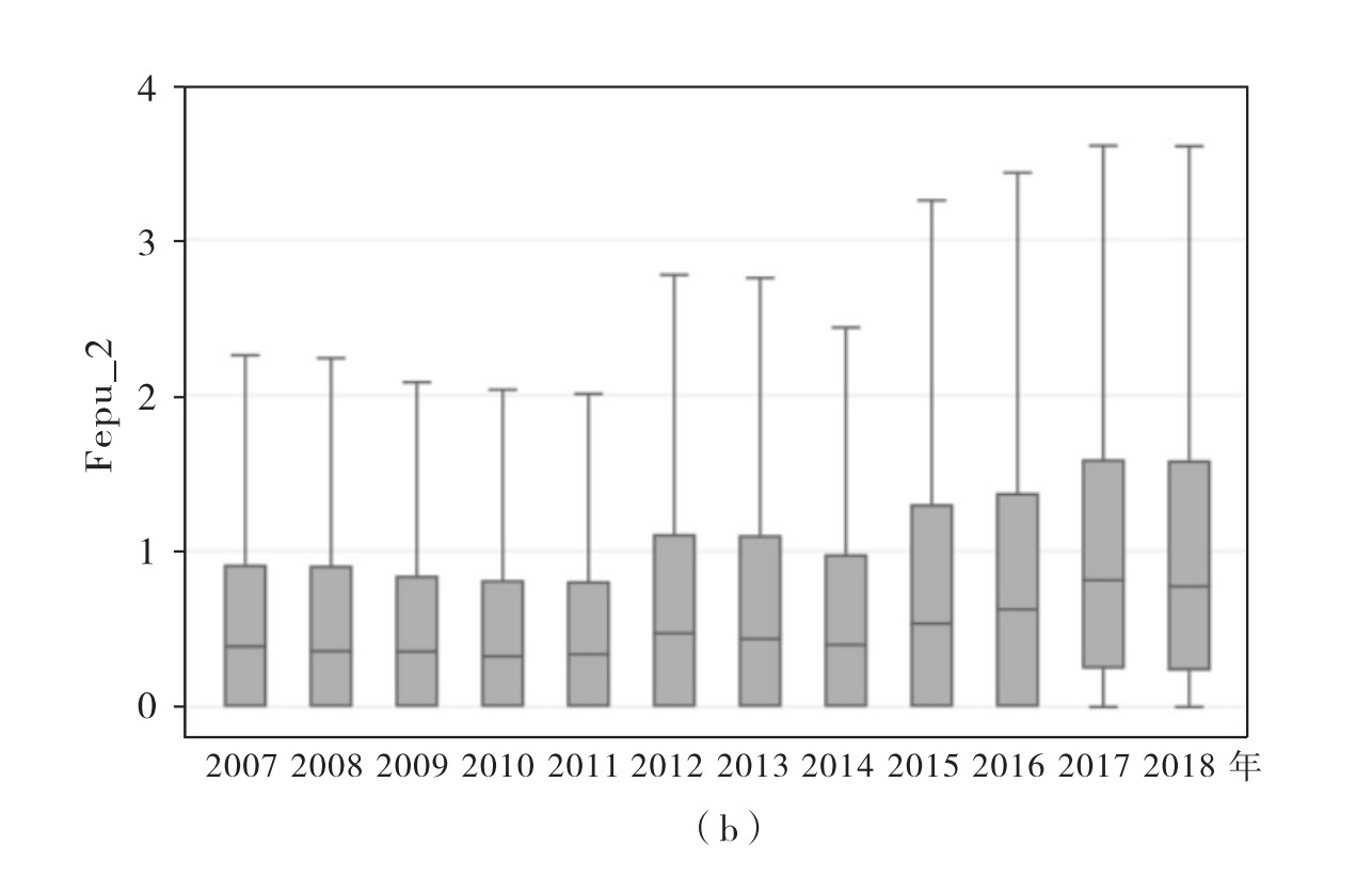 [3] 聂辉华等(2020)通过从上市公司披露的年报提取与经济政策不确定性相关的关键词,构建衡量企业个体面临的经济政策不确定性程度的指标。企业不确定性感知的指标构建方法有两种:一是Fepu_1=(不确定性句子数量/总句子数)×100;二是Fepu_2=(不确定性词语数/总词数)×100。