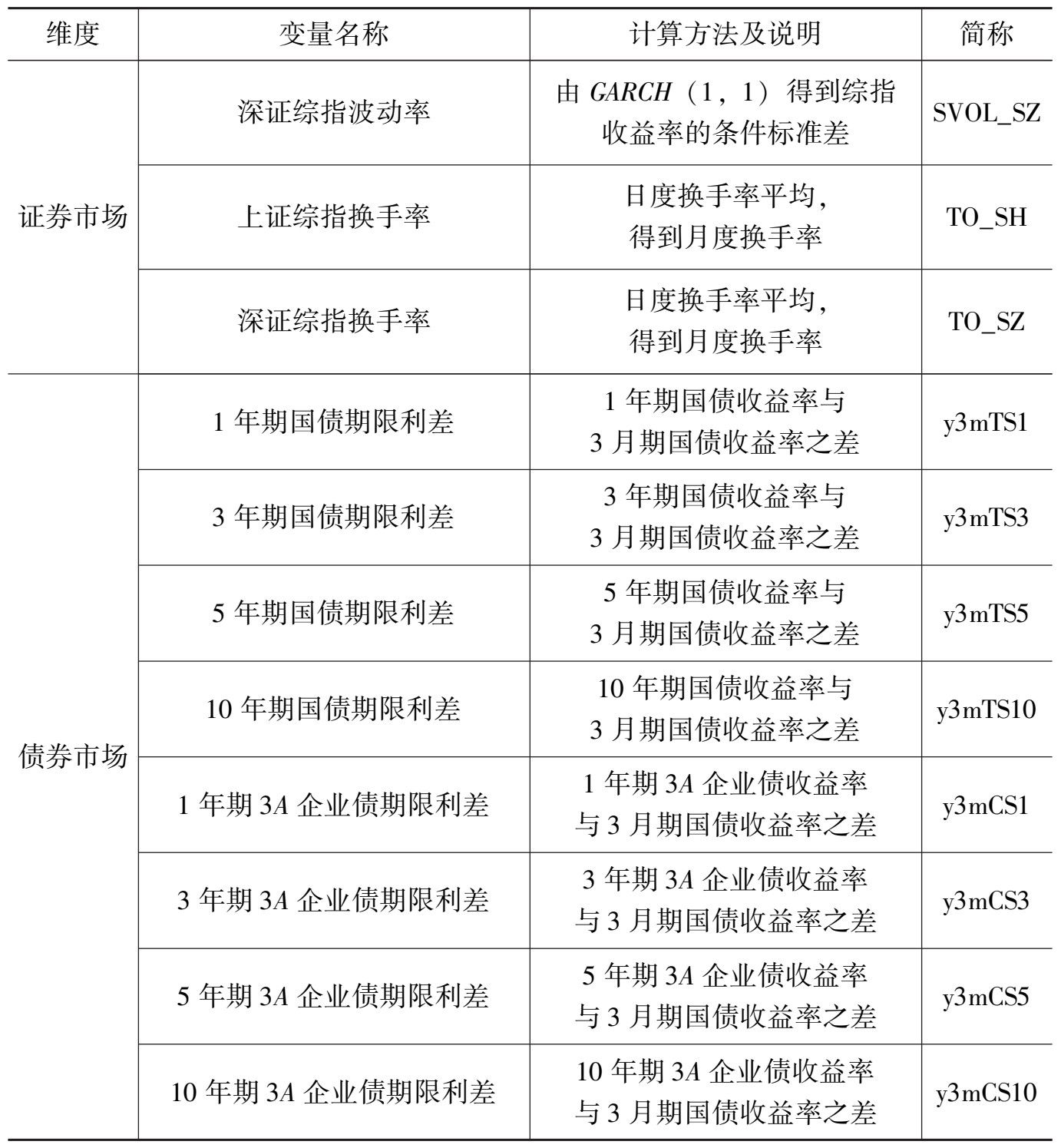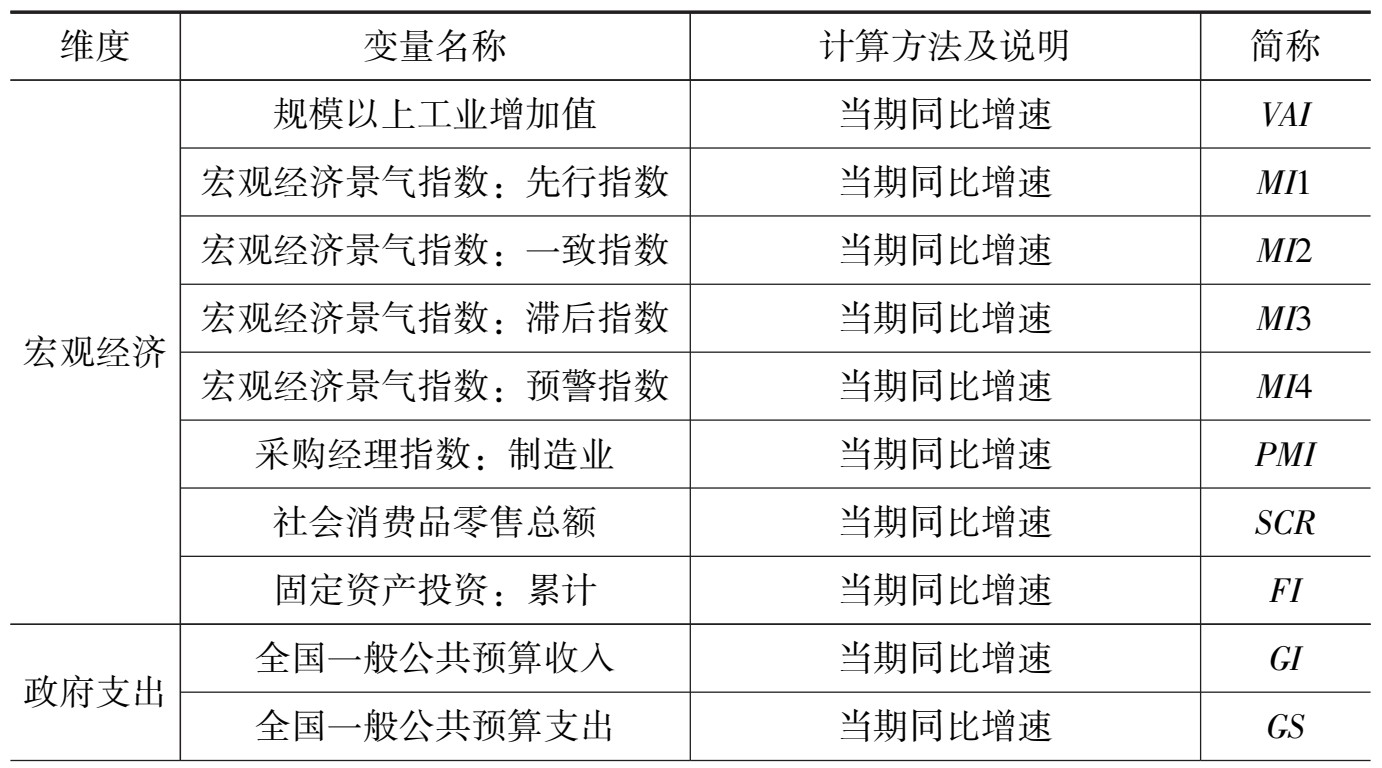 表3-2 中国经济不确定性指数构建选用的中国宏观经济变量