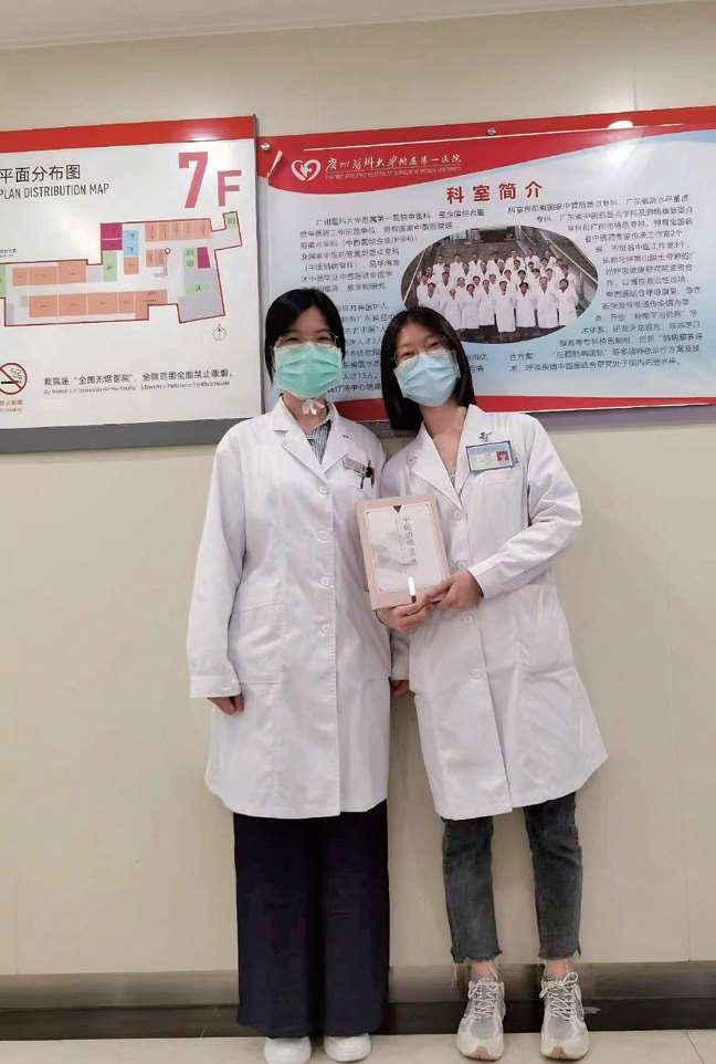 林敏(右)在实习时和广医一院中医科黄婉怡老师的合照