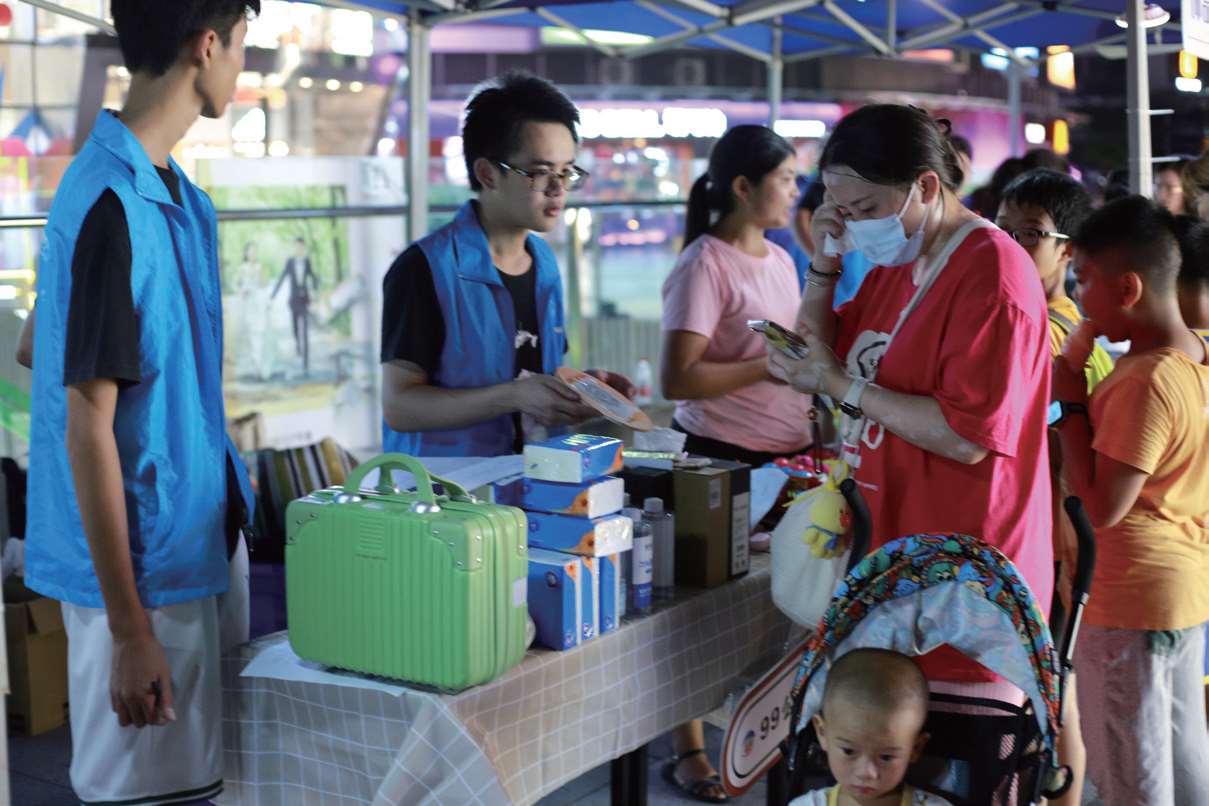 苏烁威(左二)参与流动儿童捐赠图书义卖活动