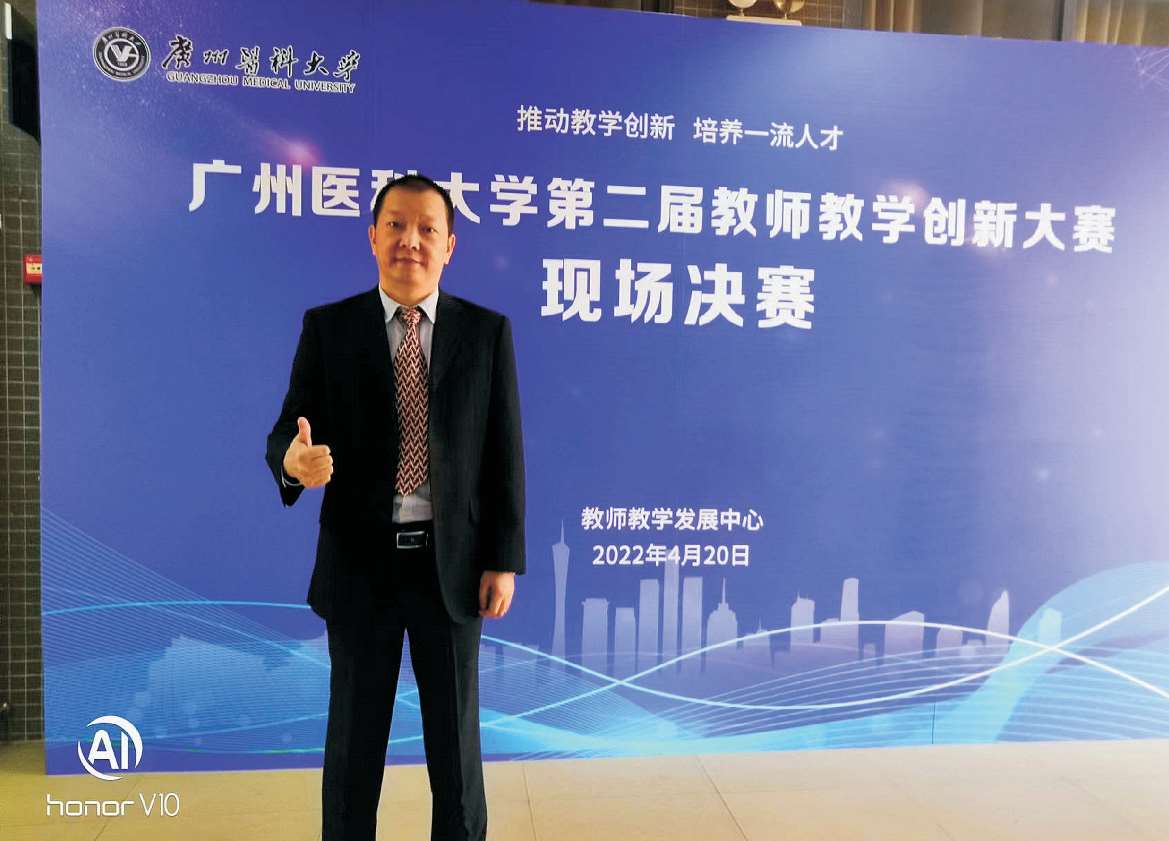 2022 年,周毅教授在广州医科大学第二届教师教学创新大赛决赛现场