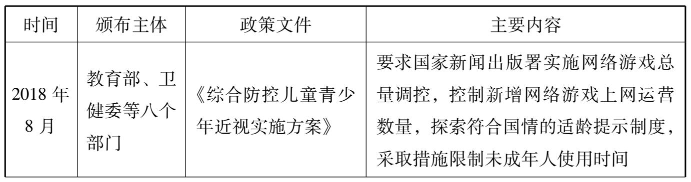 表 1-1 2018—2021年游戏行业主要监管政策文件