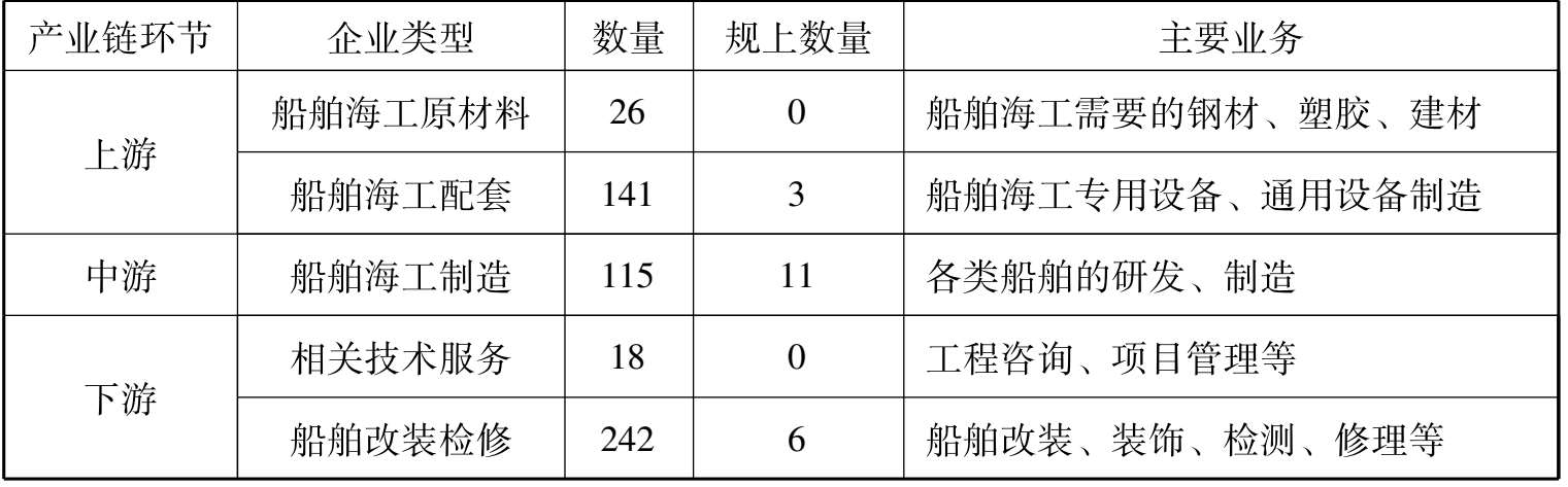 (2)海洋船舶与海洋工程装备制造业持续发力。2021年,广州市高端船舶与海工装备行业增加值约380亿元。船舶制造相关产业链的企业约540家,其中规上企业20家(见表5-1)。龙头船企广船国际、黄埔文冲的营收约占广州船舶海工装备制造业总营收的七成
