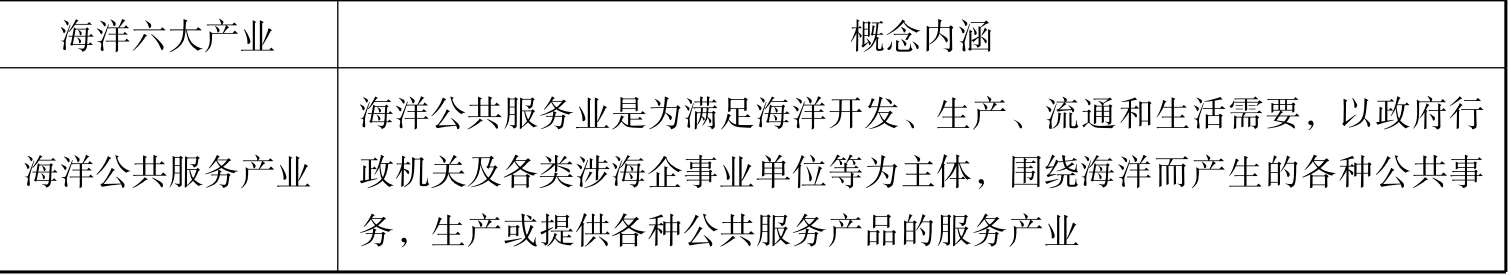 表1-2 海洋六大产业内涵一览表
