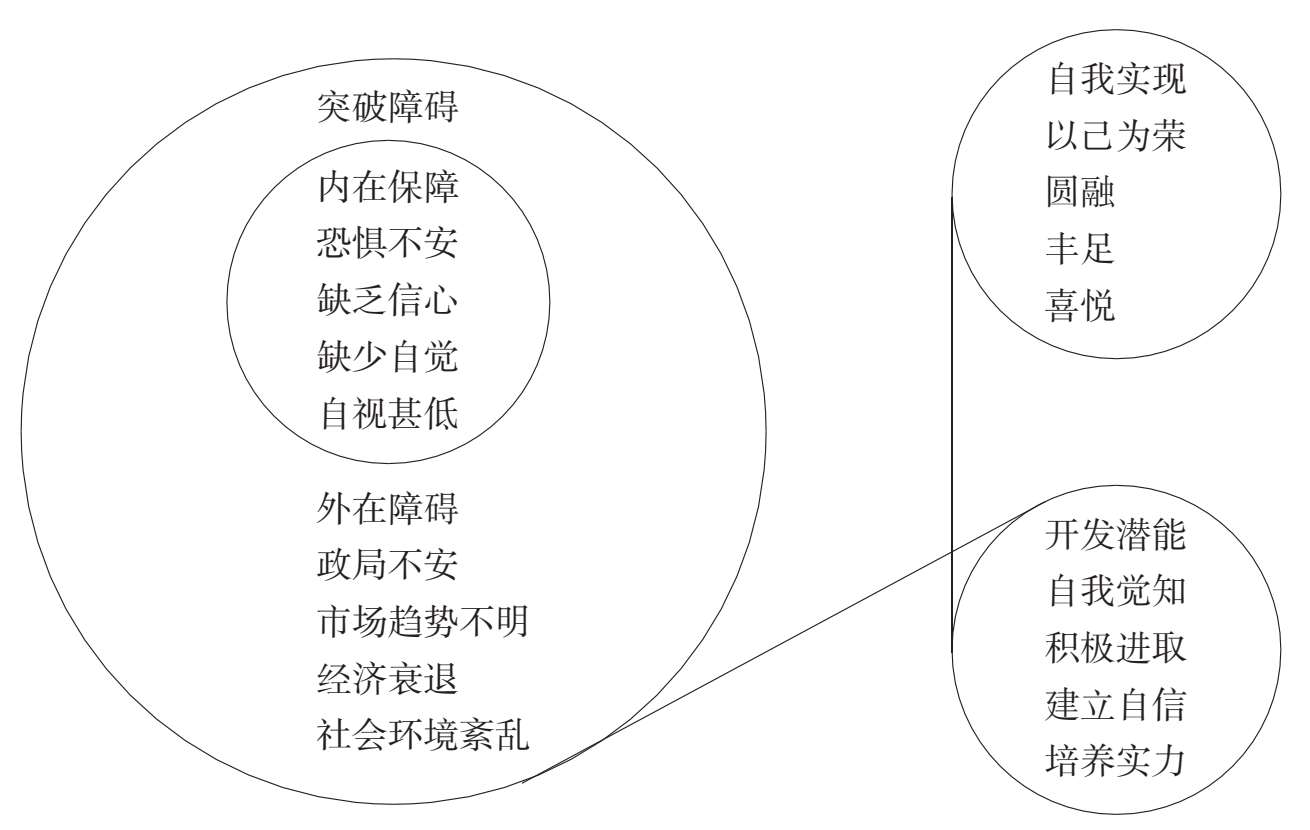 每个人成长轨迹不同,所处的环境条件不同,兴趣爱好性格特点不同,发展潜力不同,发展成就也不尽相同,生涯需要规划。著名心理学家米凯洛奇(Betty Neville Michelozzi)告诉我们:职业规划有突破障碍、开发潜能、自我实现等三个积极目的(钟谷兰,杨开,2016:8),见图 1-4。