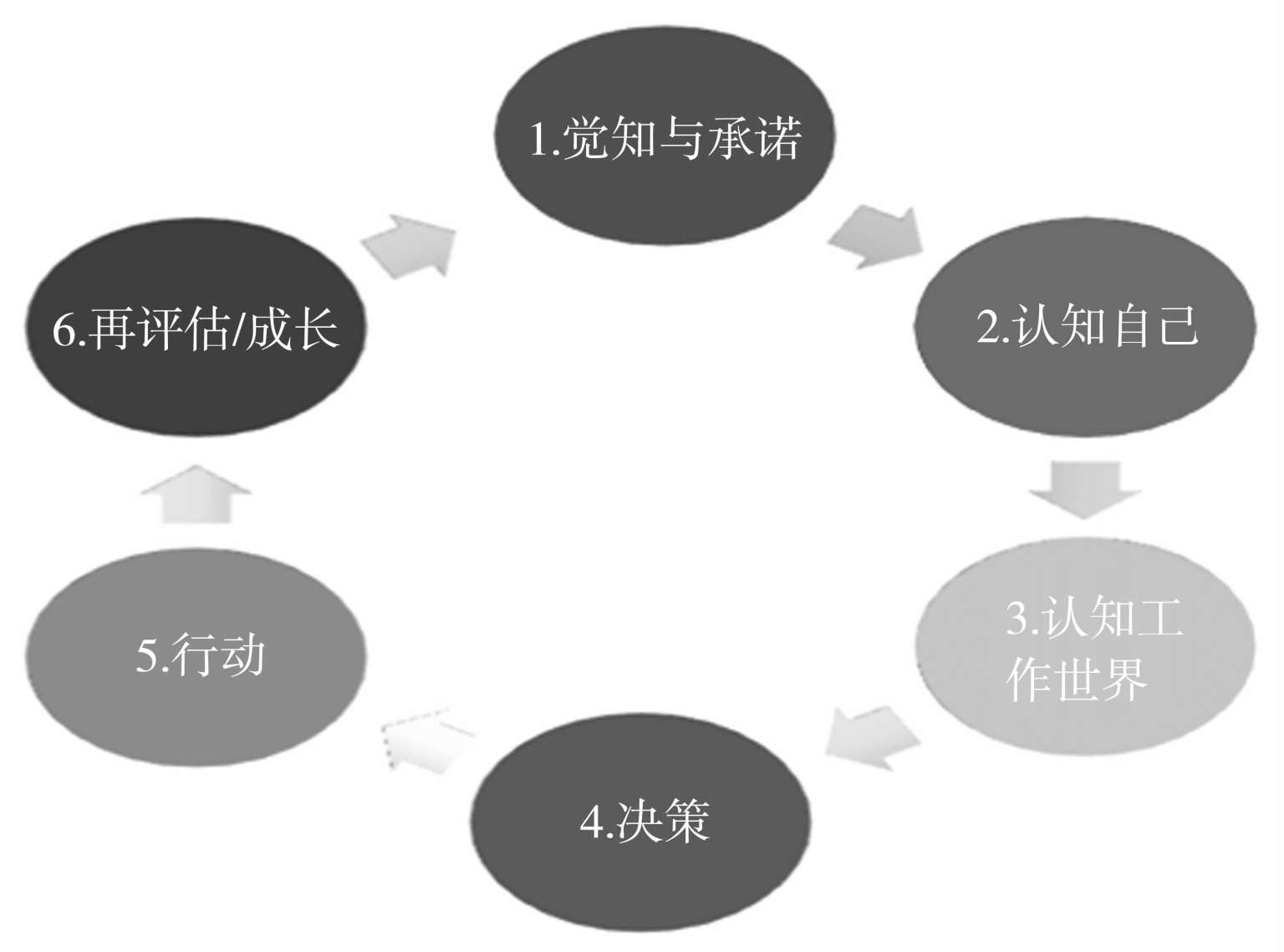 《大学生职业生涯发展与规划》中提到,一个系统的职业规划应当包括 6个步骤(钟谷兰,杨开,2016:10),见图 1-3。