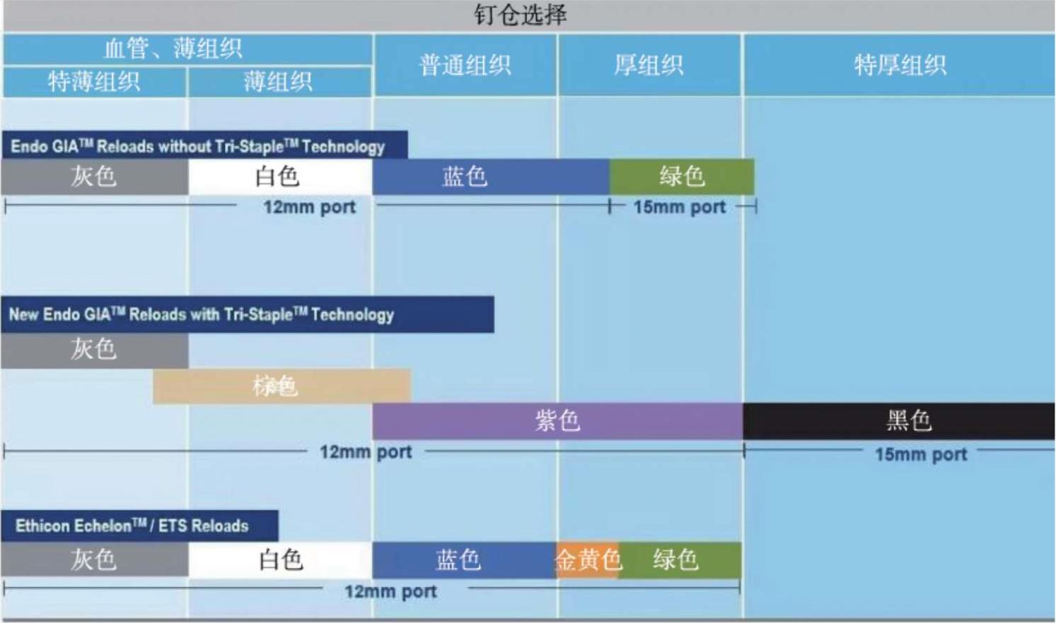 (3)钉仓的选择:根据组织的厚度和韧性选择合适的钉仓。