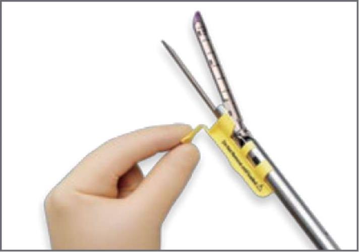 ④在闭合钉仓开口时,请确认欲夹闭组织上没有其他异物(比如夹子),如果有异物被一并夹闭入钉仓开口,将会影响刀片的完整切割与钉缝的正确成型。