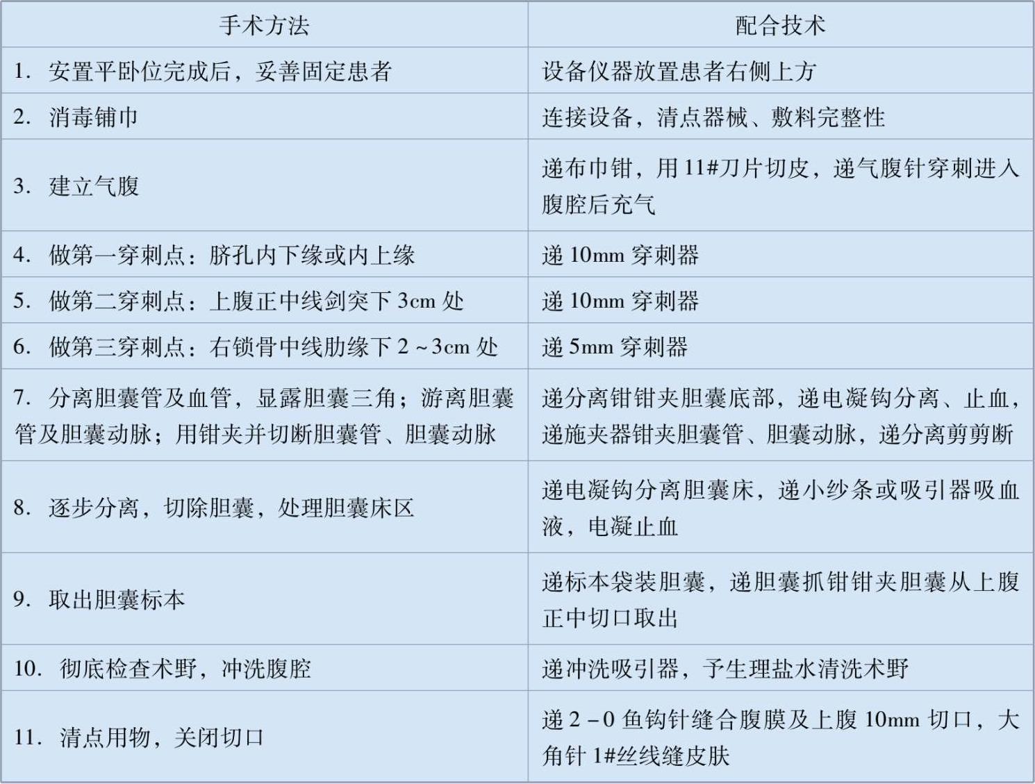 腹腔镜胆囊切除手术方法与配合技术见表3-3。