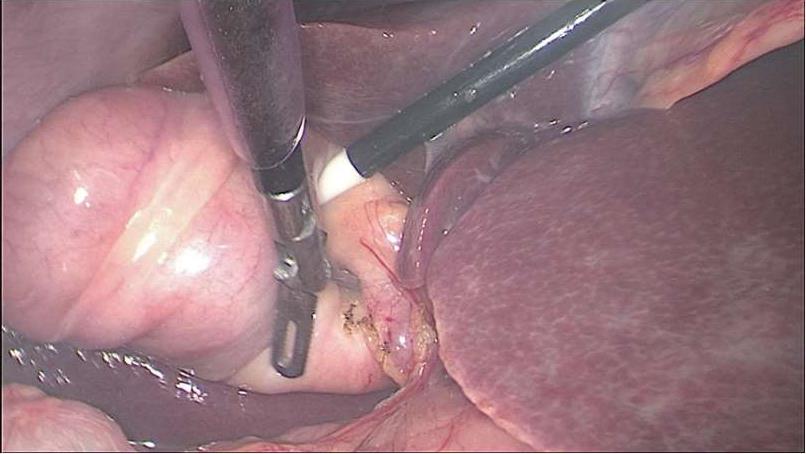 (2)胆囊动脉变异及术中较难分离,采用超声刀及双极电凝止血。