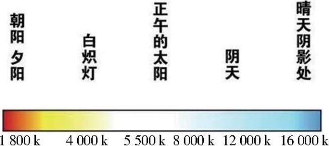 自然白光色温是5500~6000K,常规氙气灯光源色温:6000K。常见的光源色温见图1-15。