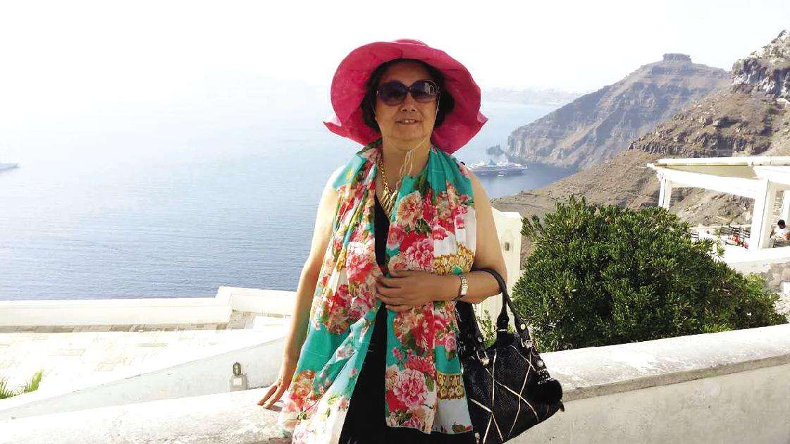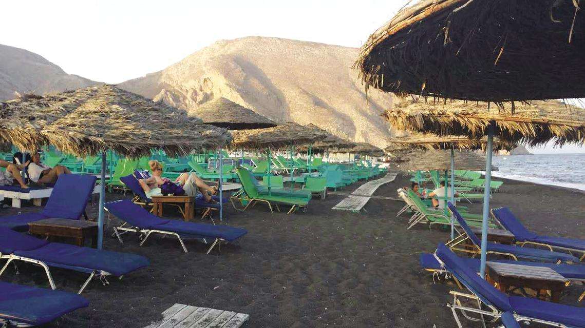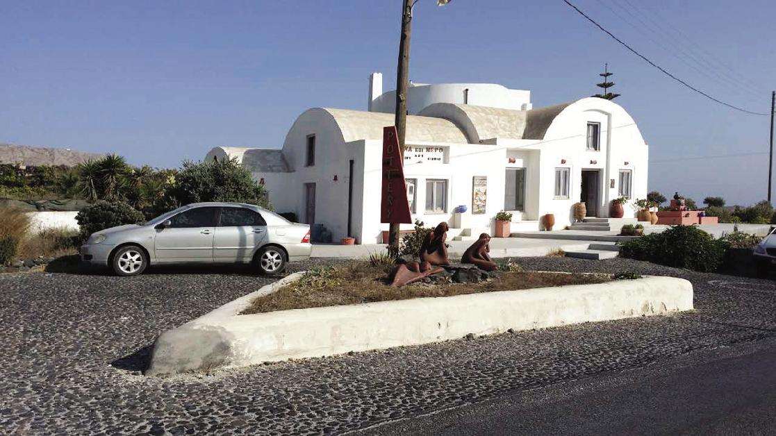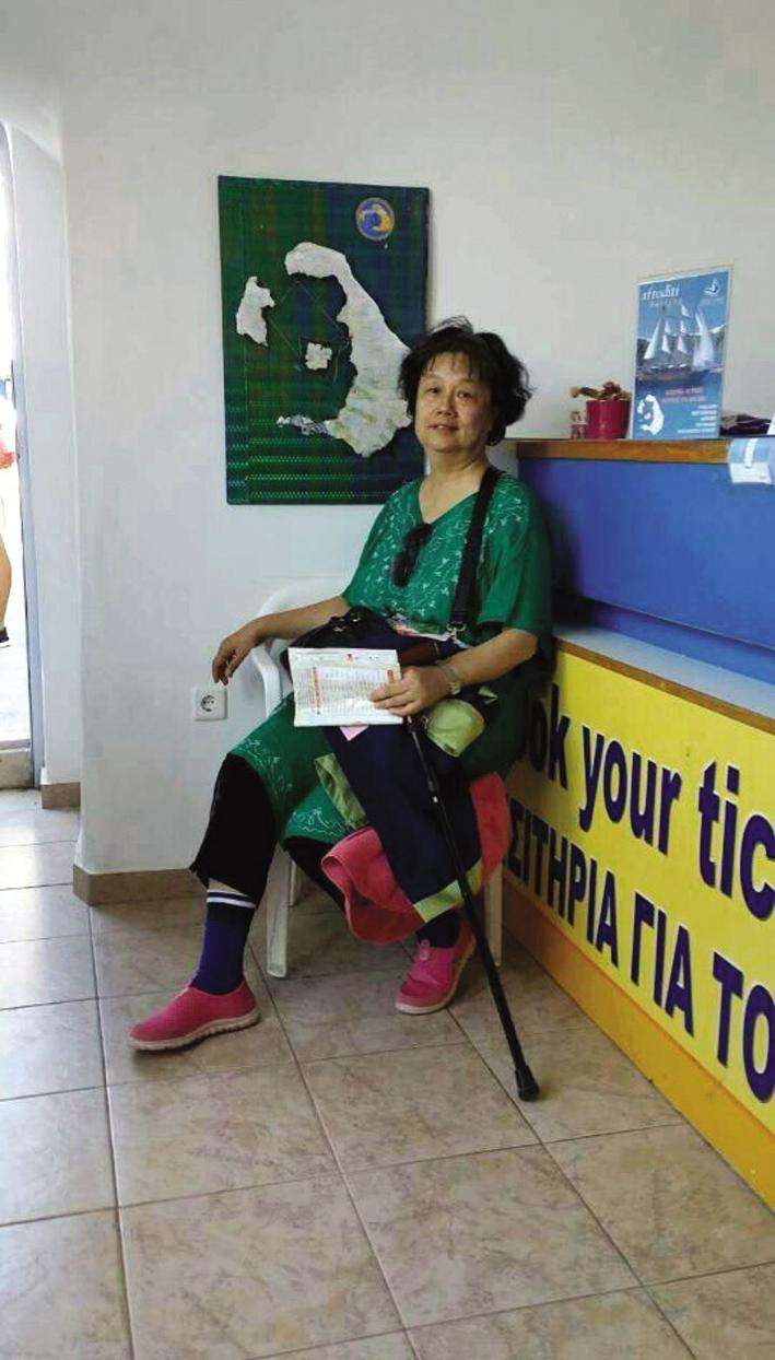 我疲惫不堪地完成艰难的“驴道”之行,在当地的一个小旅行社前台坐下来休息。背景墙上绿色的地图就是圣岛的地图,整个岛屿被爱琴海包围。在疲惫不堪时,我想:“人生的道路有时也与此类似,在看似无路可走时,也许坚持一下,就会ë柳暗花明又一村í,即使要为此付出相当大的代价。”