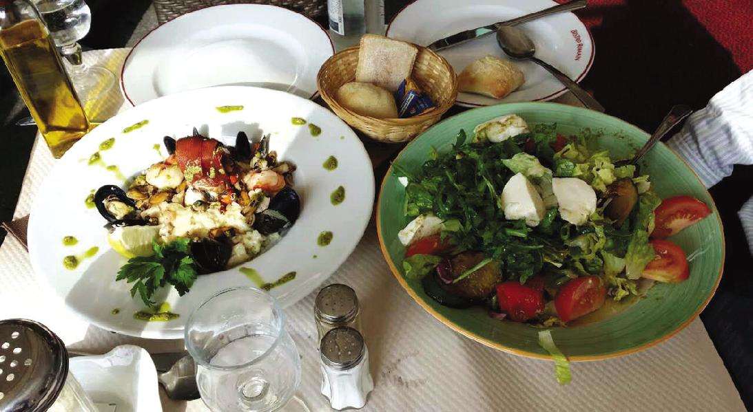 我们的头盘和主菜终于上了,头盘是奶酪和青菜,主菜是海鲜,有海虹、煎鱼、大虾等。法国面包无限量供应,不过坦率地说,里尔的面包远远比不上巴黎的面包,巴黎新鲜出炉的法棍面包是我永远的心头好。