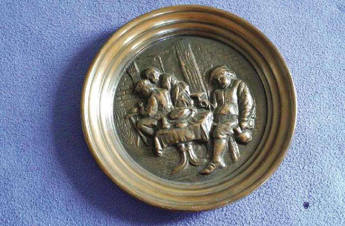 旧货市场上最多的要属图书了,可惜我对此并不感兴趣,倒是一些铜制的工艺品盘子引起了我的注意,经过挑选。我选中了两个铜盘子,暂且给它们取名为“骑马军人”和“醉酒者”。
