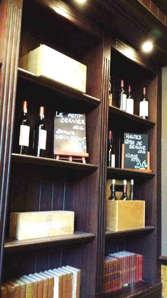 整个餐馆的书香气息给我留下深刻印象,这是在法国其他城市没有的。高高的书架上,图书和酒别致地摆在一起,让顾客觉得这不是一个吃饭的地方,而仿佛是图书馆中供读者小憩的地方。