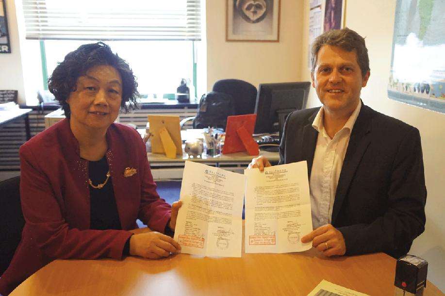 2014 年 5 月,我来到法国里尔市与法国巴黎政治大学里尔分校签订学术交流协议。