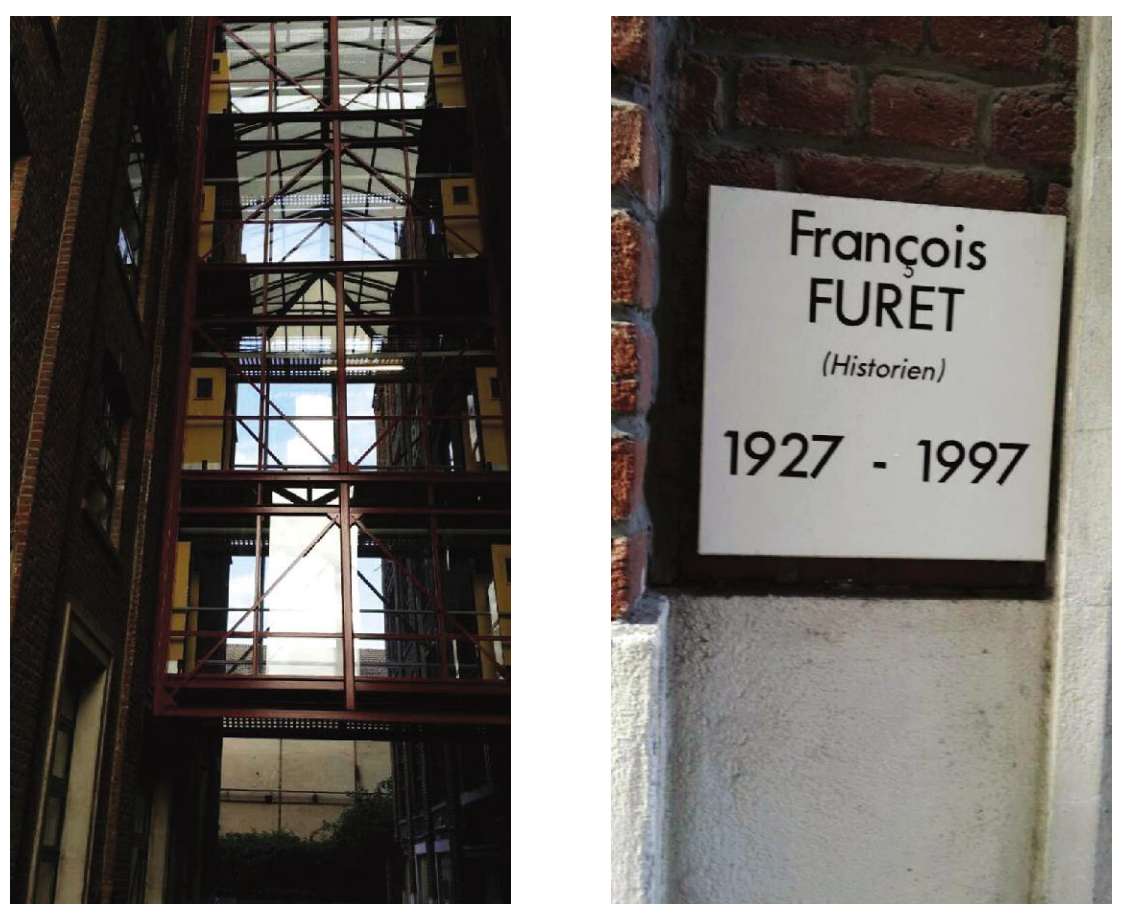 走在学校里面,抬头就可以看到这样的画面:四层铁架子把两座红砖建筑连接在一起,学校的墙上还有一个铭牌,可见这里原是一个名为FranÇois FURET的工厂的历史建筑。