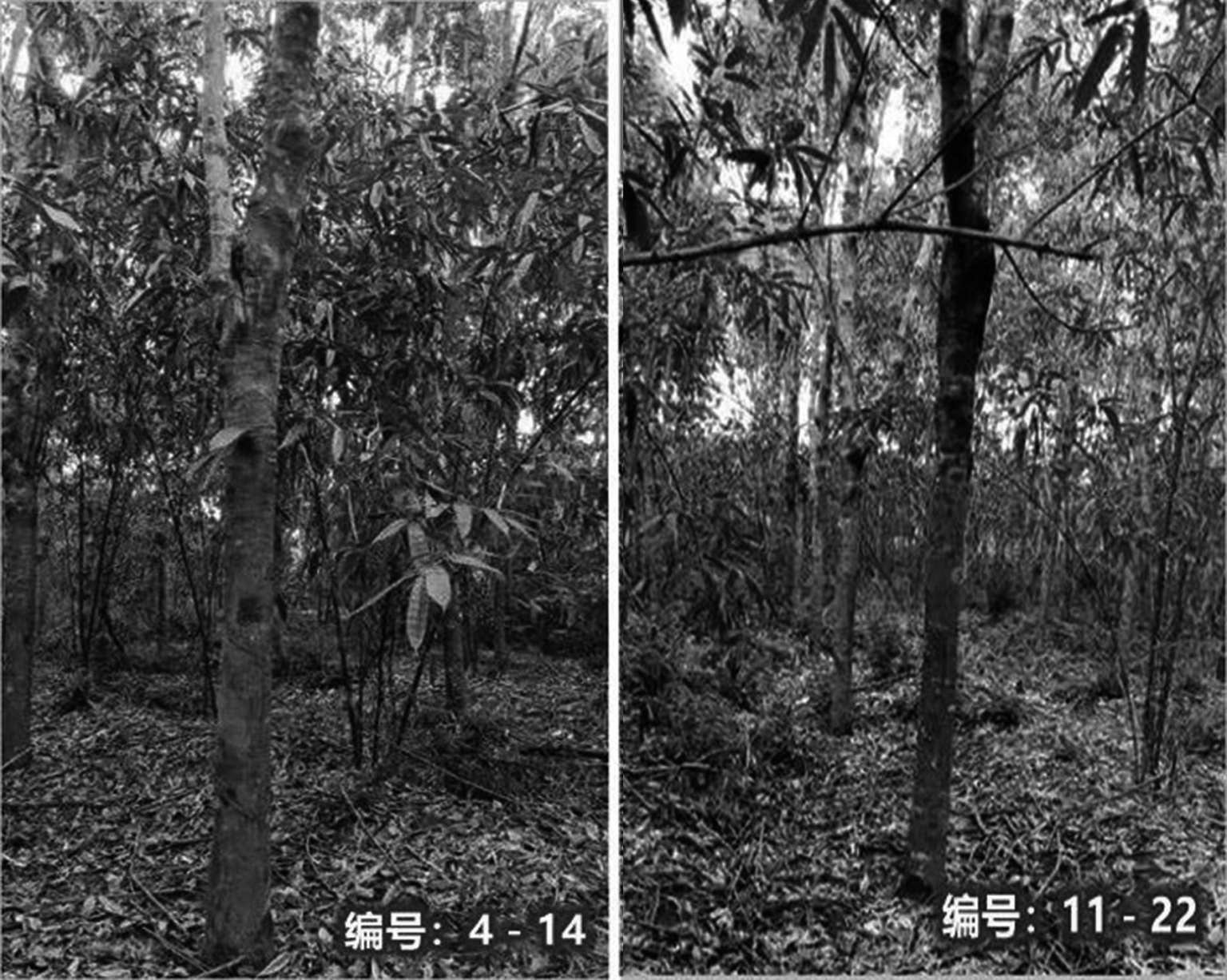 办法总是可以想出来的,终于,我找到了万嘉果热带植物园的符墩才同志,我把我的愿望告诉他,他满口答应,立马就按照我说的位置到“知青林”去找这两棵宝贝胶树,很快就将照片传给了我。