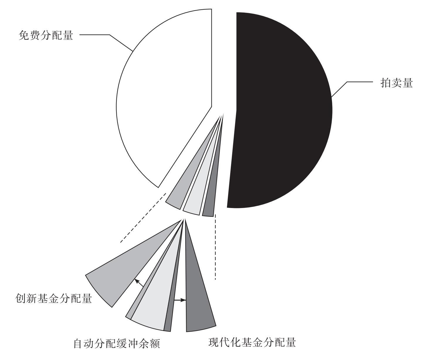 第一阶段(2005—2007),欧盟成员国各自通过建立分配计划进行分配,至少95%的配额是免费发放的,主要采用历史排放法来分配免费配额。仅有匈牙利、爱尔兰和立陶宛采用了拍卖的方式。