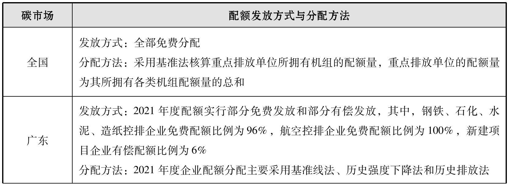 注:因全国碳市场目前纳入的电力行业企业,在全国碳排放权交易市场正式开始交易之前,已在各试点市场交易,在配额方面存在试点碳市场与全国碳市场的协调问题。