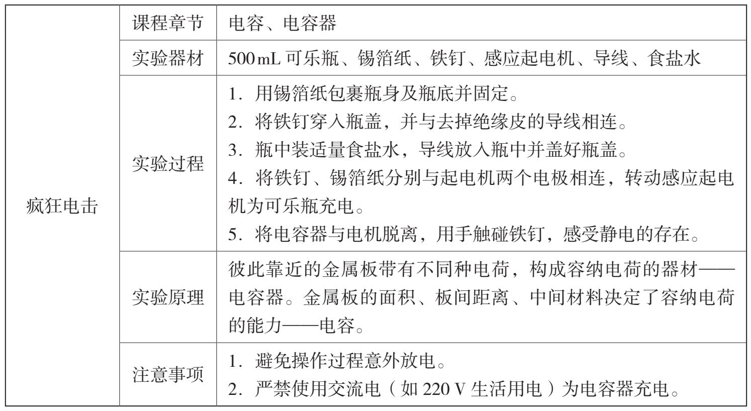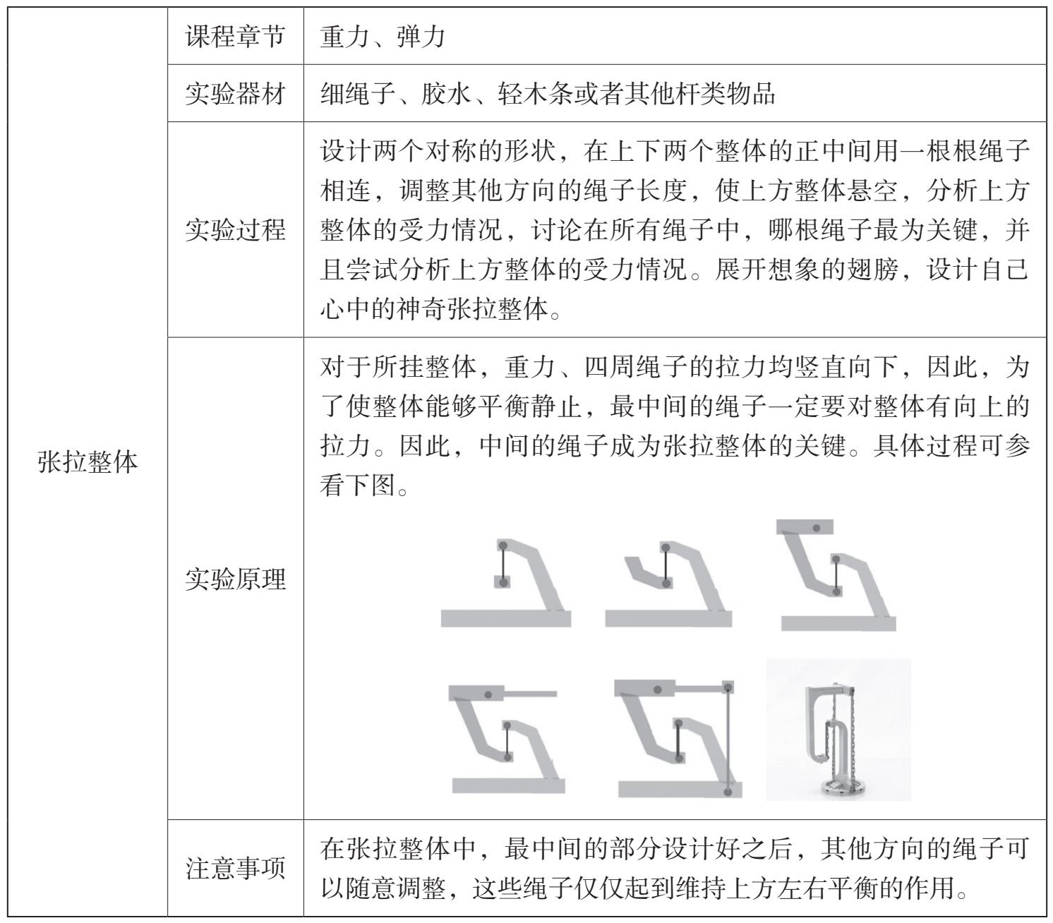 由于物理实验具有综合特性,因此,我们将趣味物理实验按照两个维度进行梳理和汇总,即专项物理实验和综合物理实验。专项物理实验针对某一个章节的知识点,简单易行,现象明显。综合物理实验综合更多的知识,更利于培养学生的综合分析及动手能力。