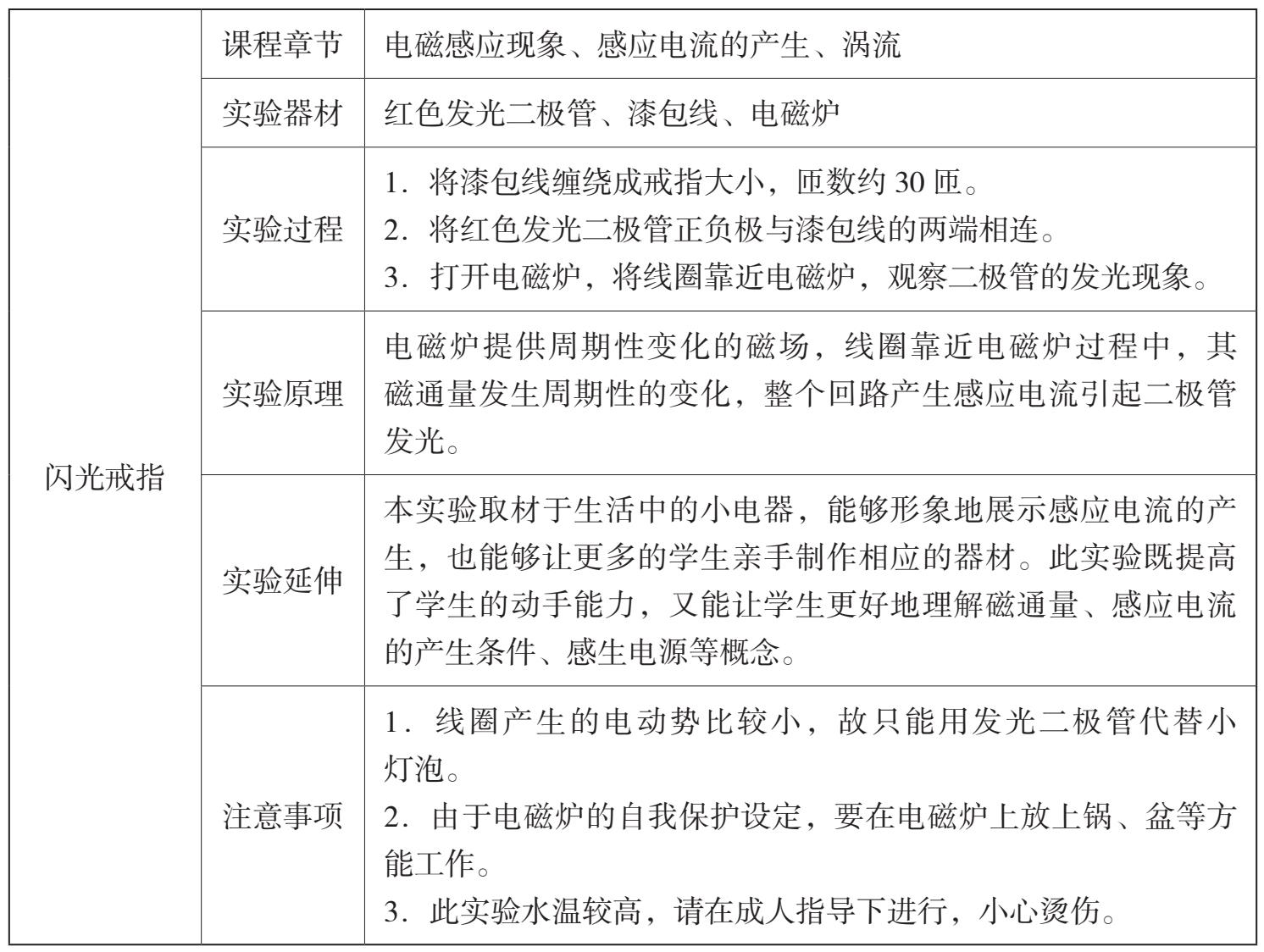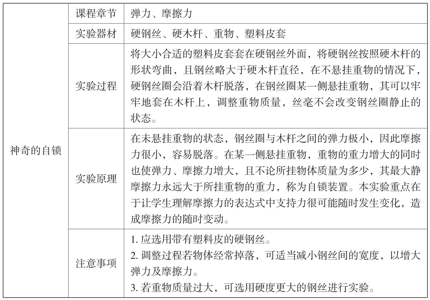 通过上述趣味物理实验,我们发现,在教育教学过程中合理安排相应的小实验,不仅能引发学生思考、提升他们学习物理的兴趣,也能培养学生的动手能力,帮助他们进一步加深对物理规律的理解。某些设计类的实验更可以激发学生的创造力,为学生的终身发展提供更好的教育契机。物理实验千变万化,而各种想法在教学过程中也会不断地涌现出来。本文只是列举了一些实验,希望起到抛砖引玉的作用,引起大家的思考,即如何能够不断地完善、拓展物理实验在物理教学中的作用,将教与学、学与玩相融合。基于立德树人的根本目标,如何在中学物理教学中融入课程思政,在实验教学中不断促进学生的全面、健康成长,这将是一个长久的课题。