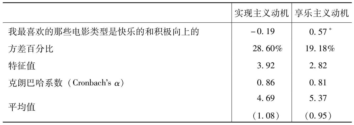 表1实现主义和享乐主义的因子载荷量和描述性统计