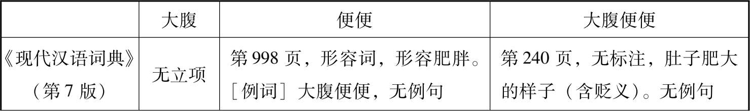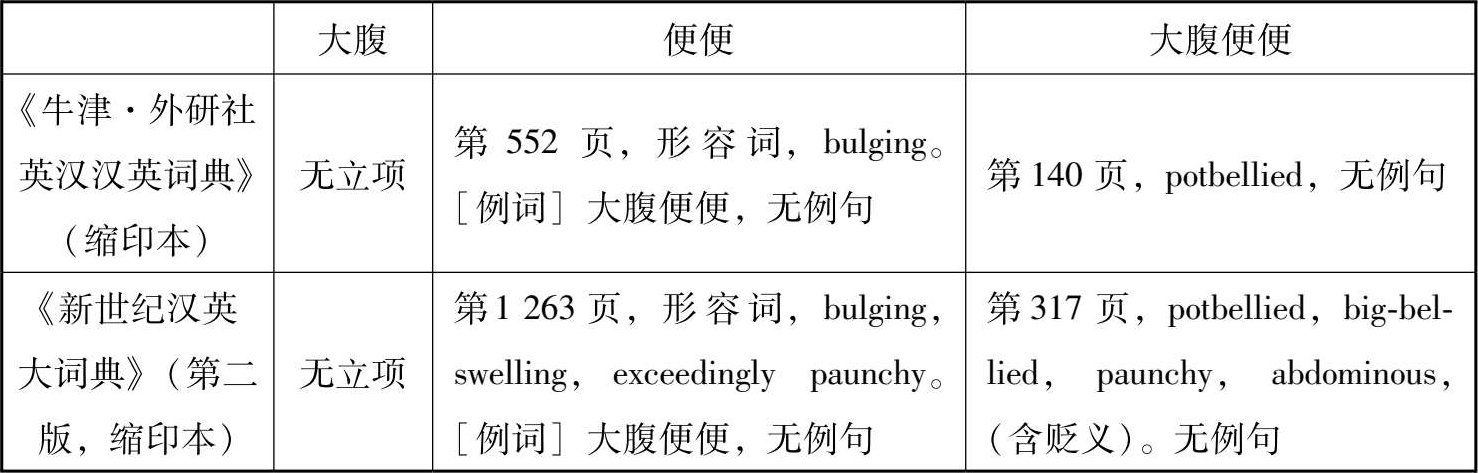表3 《现代汉语词典》(第7版)、《牛津·外研社英汉汉英词典》(缩印本)、《新世纪汉英大词典》(第二版,缩印本)中“大腹”“便便”“大腹便便”的释义
