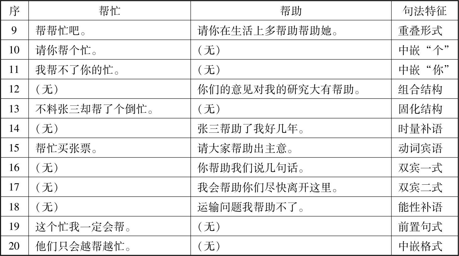 ①20个例句设置了20个句法特征(有待进一步细化)。