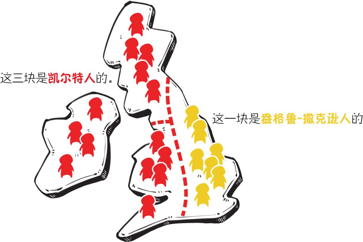 凯尔特人花了几百年才学会跟罗马人打交道,刚摸着门道,忽然碰到盎格鲁-撒克逊人,又被打蒙了。于是,大家又坐下来分地盘: