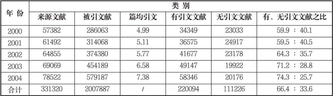 表3-1 2000—2004年CSSCI论文、引文数据概况